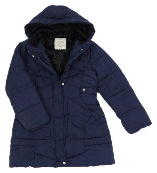 Tmavomodrý šušťákový prešívaný zimný kabát s kapucňou George