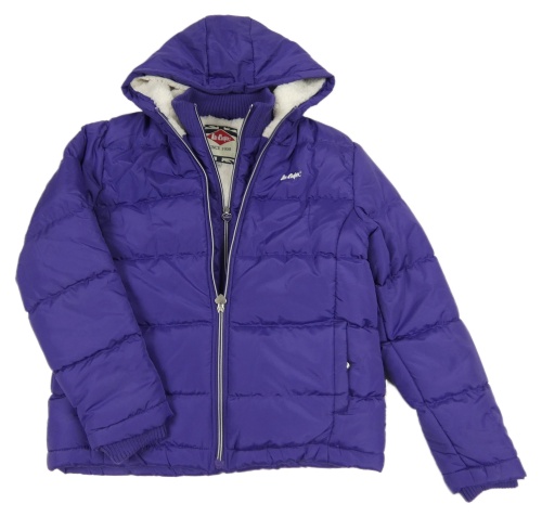 Fialová šušťáková prešívaná zimná bunda s kapucňou Lee Cooper
