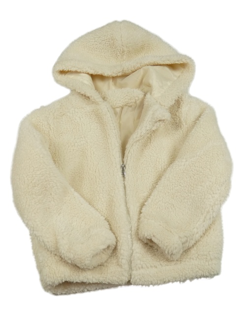 Smotanová huňatá podšitá bunda s kapucňou Shein