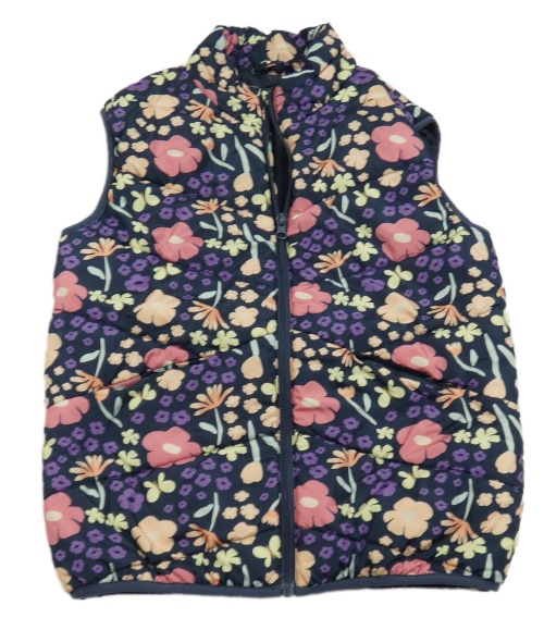 Tmavomodrá šušťáková prešívaná zateplená vesta s kvietkami Name it