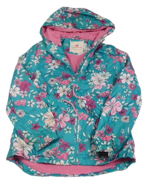 Modrozelená šušťáková jesenná parka s kvietkami a kapucňou George