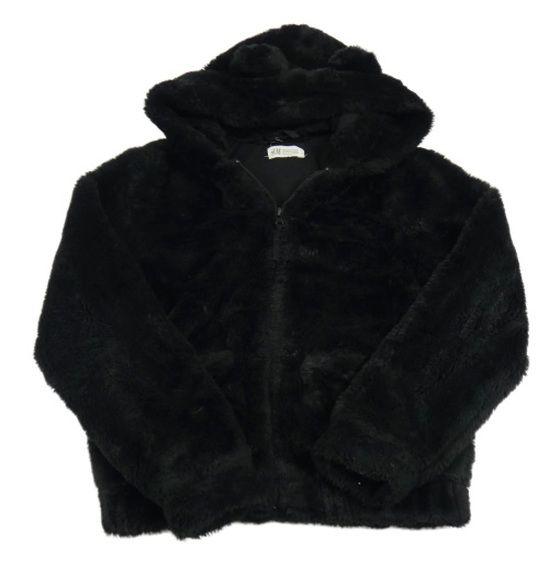 Čierna kožušinová podšitá bunda s kapucňou s uškami H&M