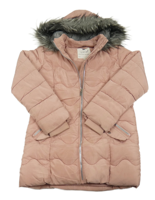Staroružový prešívaný šušťákový zimný kabát s kapucňou s kožešinou F&F