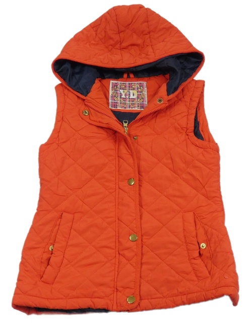 Jahodová šušťáková prešívaná zateplená vesta s kapucňou Yd.