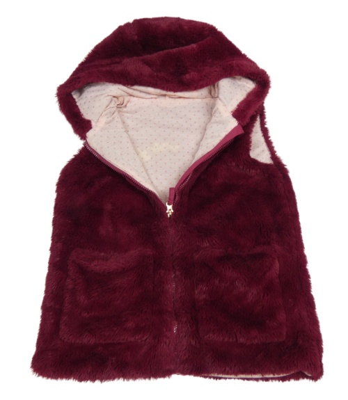 Vínová kožušinová podšitá vesta s kapucňou Nutmeg