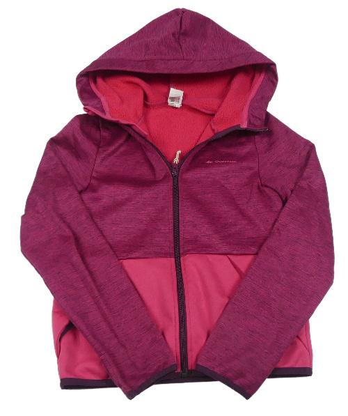 Tmavorůžovo-černá melírovaná thermo bundomikina s kapucňou Quechua