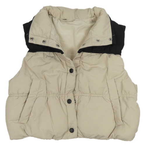Béžovo-čierna šušťáková zateplená crop vesta