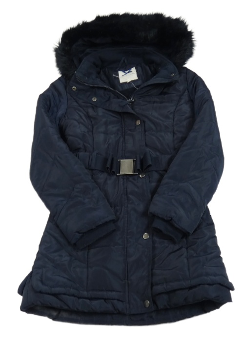 Tmavomodrý šušťákový zimný kabát s opaskom a kapucňou Jasper Conran