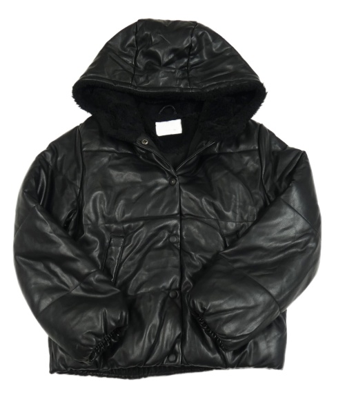 Čierna prešívaná koženková zateplená bunda s kapucňou ZARA