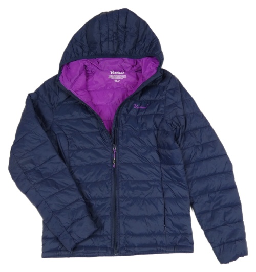 Tmavomodrá prešívaná šušťáková zateplená bunda s logom a kapucňou Vertical