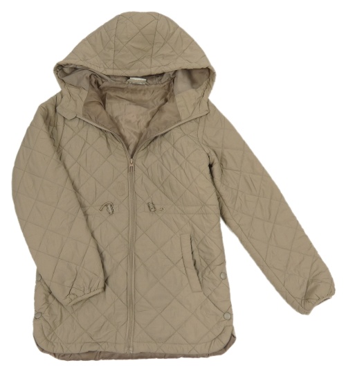 Béžový prešívaný šušťákový zateplený kabát a kapucňou DESTINATION
