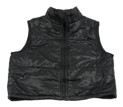 Čierna prešívaná šušťáková zateplená crop vesta SHEIN