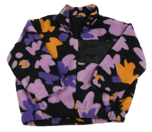 Černo-lila vzorovaná huňatá podšitá bunda Next