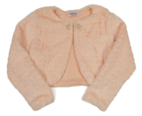 Broskvové vzorované kožešinové podšité bolérko s broží Pretty baby