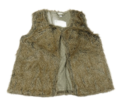 Hnedo-béžová kožušinová podšitá vesta Vertbaudet