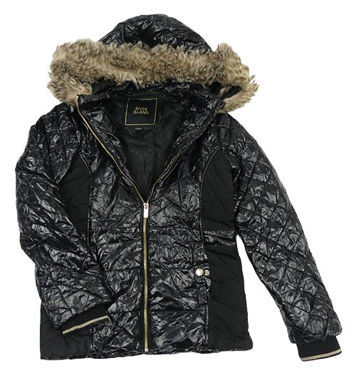 Čierna šušťáková zimná bunda s kapucňou River Island