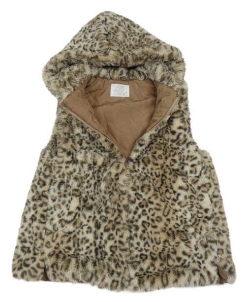 Béžová leopardí kožušinová podšitá vesta s kapucňou Zara