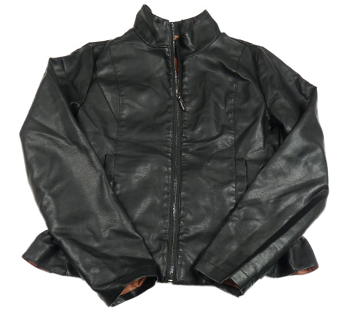 Čierna koženková bunda s volánikom