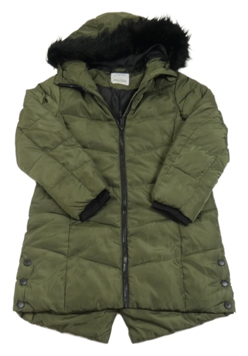 Khaki prešívaná šušťáková zimná parka s kapucňou s kožešinou PRIMARK