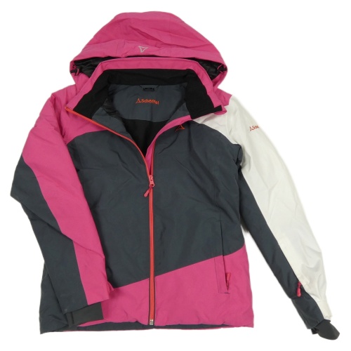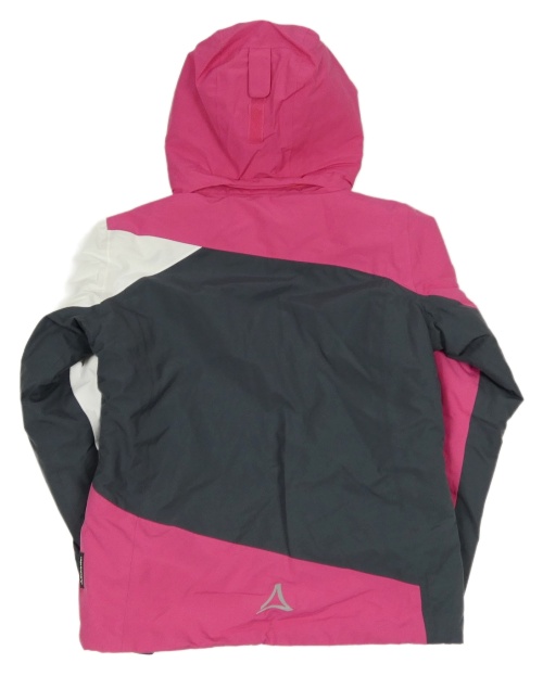 Sivo-ružovo-biela funkčná lyžiarska bunda s kapucňou