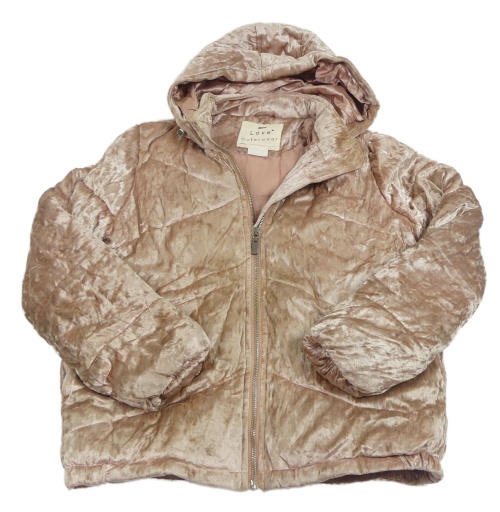 Svetloružová zamatová zateplená bunda s kapucňou F&F