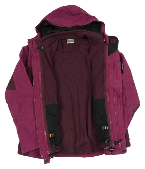 3v1 - Vínovo-tmavovínová šušťáková funkčná jarná bunda s kapucňou Jack Wolfskin