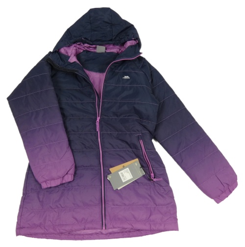 • Nové - tmavomodro-fialový prešívaný šušťákový funkčný zimný kabát s kapucňou TRESPASS