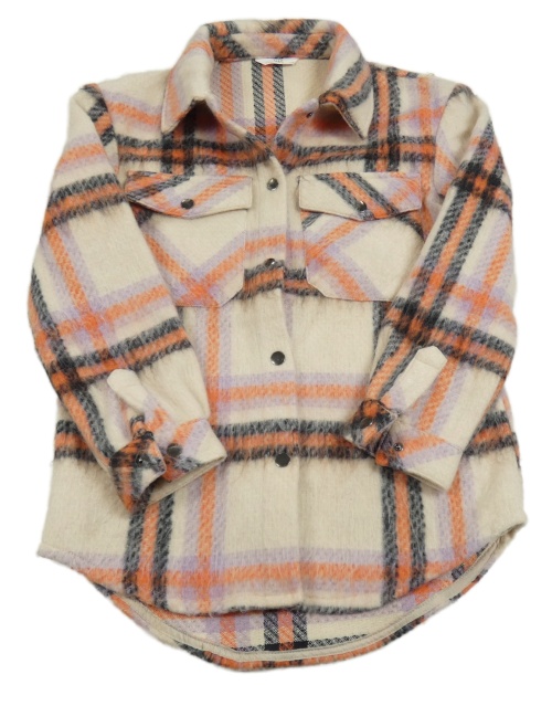 Béžovo-čierno-oranžová kockovaná vlnená košeľová bunda M&S