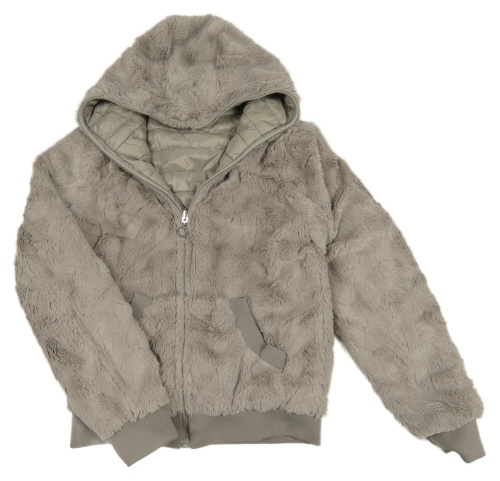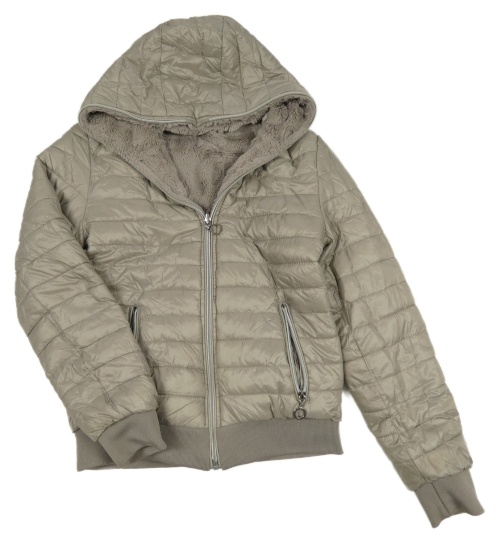 Béžová šušťáková obojstranná zimná bunda s kapucňou