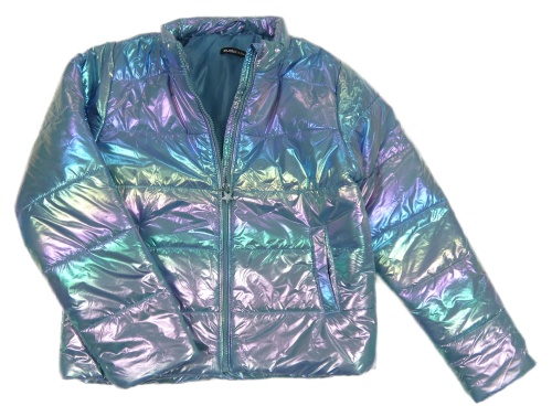 Modro-farebná metalická šušťáková zateplená bunda