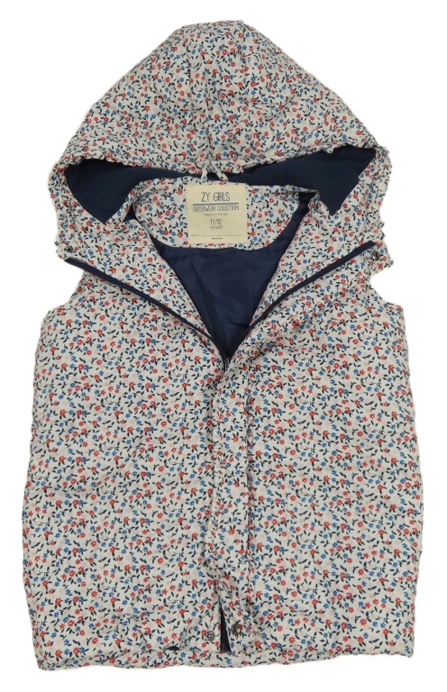 Biela kvetovaná šušťáková zateplená vesta s kapucňou