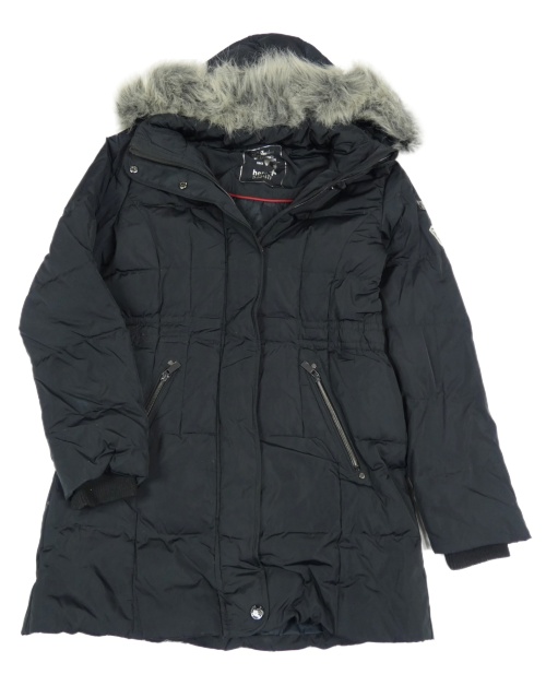 Čierny prešívaný šušťákový zimný kabát s drahokamem a kapucňou s kožešinou C&A