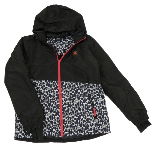 Čierno-biela šušťáková lyžiarska bunda s fľakmi a kapucňou Crivit