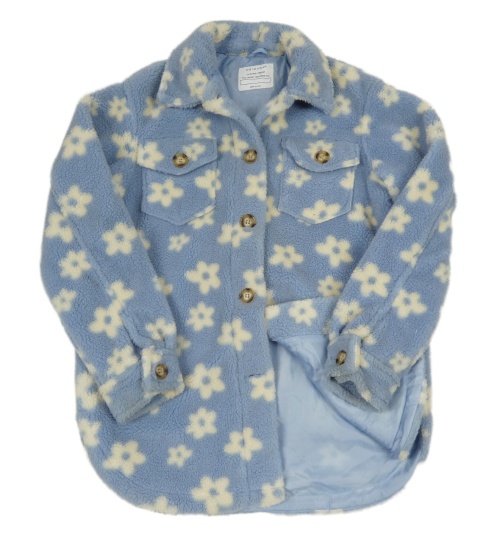 Svetlomodrá huňatá podšitá košeľová bunda s kvietkami Primark