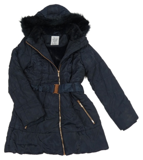 Tmavomodrý šušťákový zimná kabát a kapucňou Tu