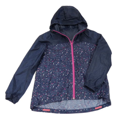 Tmavomodro-ružová vzorovaná nepromokavá bunda s kapucňou