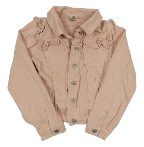 Svetloružová rifľová crop bunda s volánikmi Monsoon