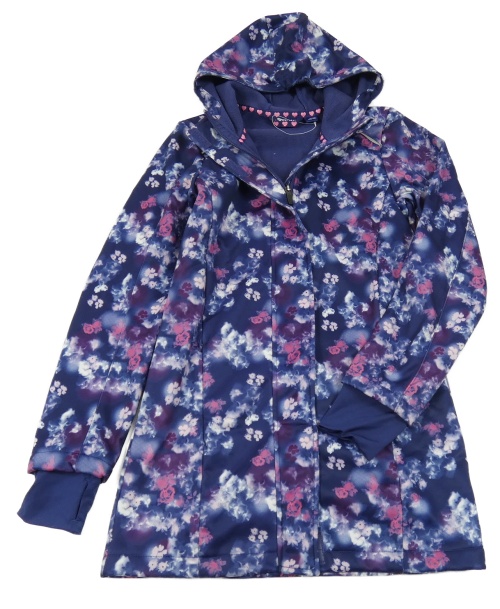 Fialovo-tmavomodrá kvetovaná softshellová parka s kapucňou Crivit