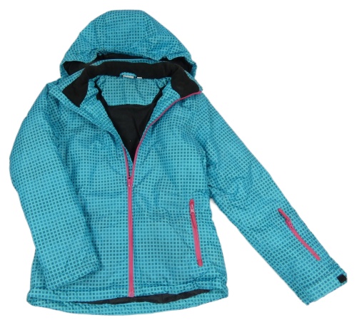 • Azurovo-petrolejová kockovaná šušťáková funkčná zimná lyžiarska bunda s kapucňou crane