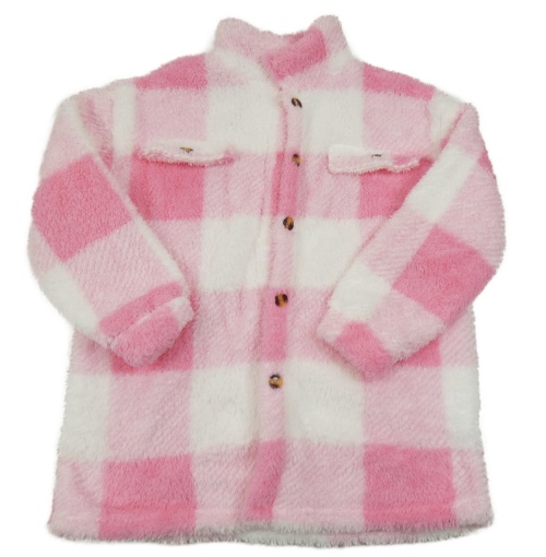 Ružovo-biela kockovaná chlpatá košeľová bunda