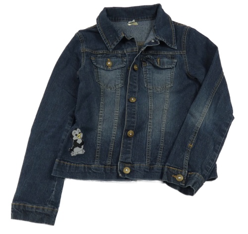 Tmavomodrá crop rifľová bunda s kvietkami