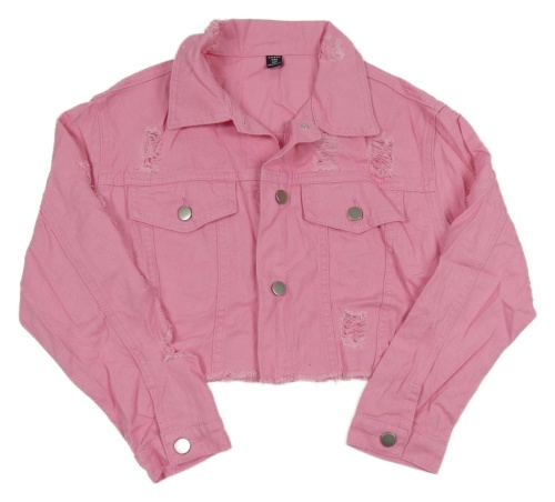 Ružová ľahká rifľová crop bunda s vyšúchaním Shein