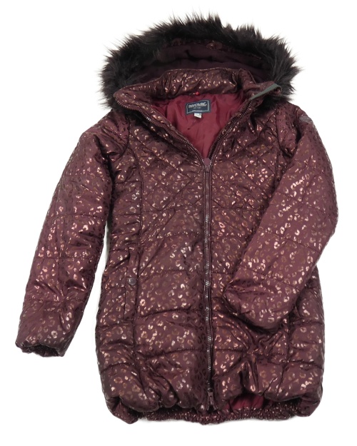 • Vínovo-bronzová šušťáková funkčný bunda leopardím vzorom a kapucňou s kožešinou Regatta