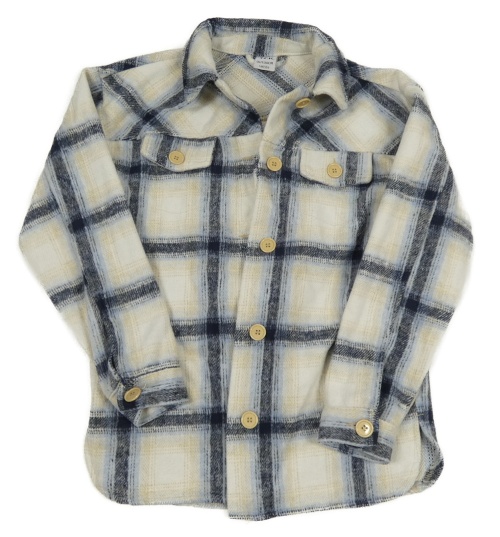 Bielo-béžovo-modro-tmavomodrá kockovaná vlnená košeľová bunda Y.F.K.