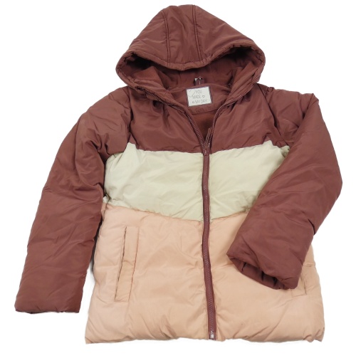 • Mahagónovo-bielo-svetloružová prešívaná šušťáková zimná bunda s kapucňou YIGGA