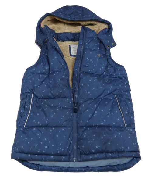 Tmavomodrá šušťáková zateplená vesta s hviezdami a kapucňou Fat Face