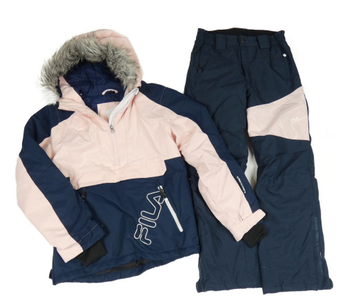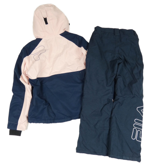 2set- ružovo-tmavomodrá šušťáková zimná bunda s kapucí+ oteplovačky Fila