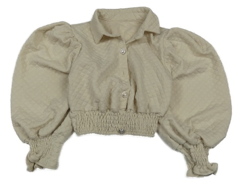 Smotanová vzorovaná crop ľahká bunda s nařasenými rukávy