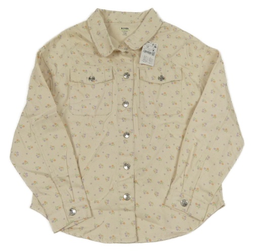 Nové - smotanová rifľová košeľová bunda s kvietkami a golierikom KIABI