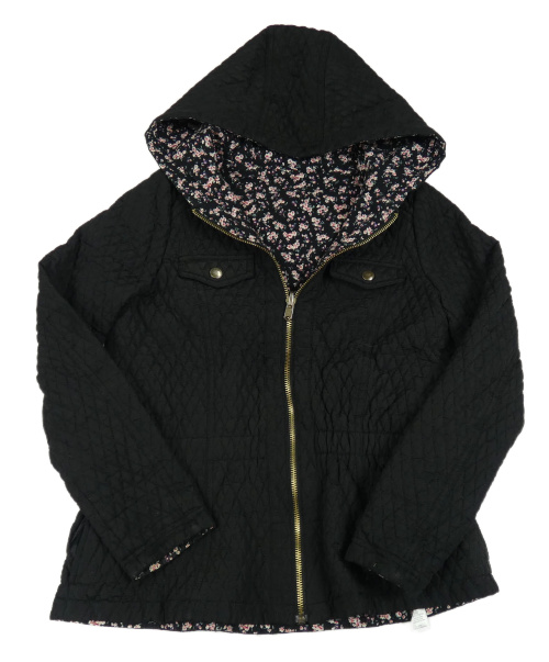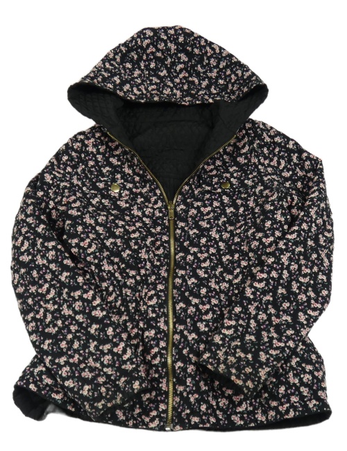 Čierna kvetovaná plátenná lehce zateplená obojstranná bunda s kapucňou George